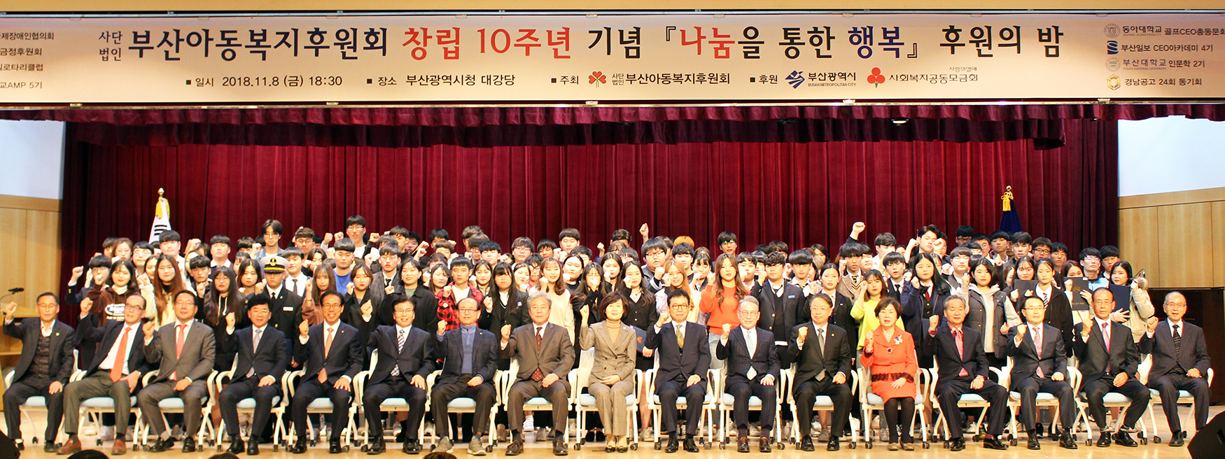 매년 11월에 '나눔을 통한 행복' 후원의 밤을 열어 아동복지시설 아동과 다문화가정, 새터민가정, 지역사회 어려운 청소년들에게 장학금전달, 복지시설에서 성장하는 아동들의 퇴소시 조기 자립을 위한 디딤씨앗통장 후원금전달, 아동복지에 공이 큰 후원자에 대한 부산광역시장 표창 및 감사패 수여, 일선에서 묵묵히 소임을 다하는 사회복지사에 대한 표창 수여 그리고 복지시설 아동들의 공연을 통해 자연스러운 만남의 장을 갖고 장학생은 후원자께 감사를 전하는 계기가 되고 있다.